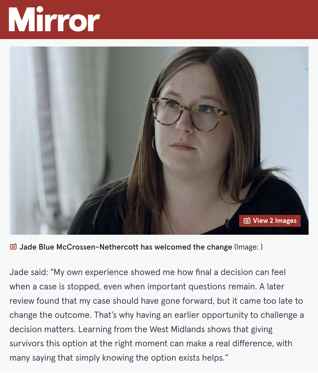 When Jade Blue McCrossen-Nethercott’s rape case was closed in 2020, it wasn’t just a personal injustice - it exposed a structural failure in how victims’ rights were protected once cases were stopped in court.