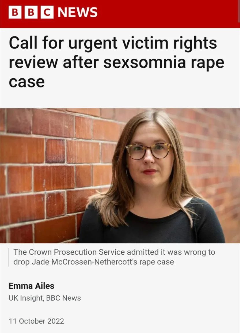 Two years later, in 2022, Jade’s BBC documentary Sexsomnia: Case Closed? brought that failure into public view.